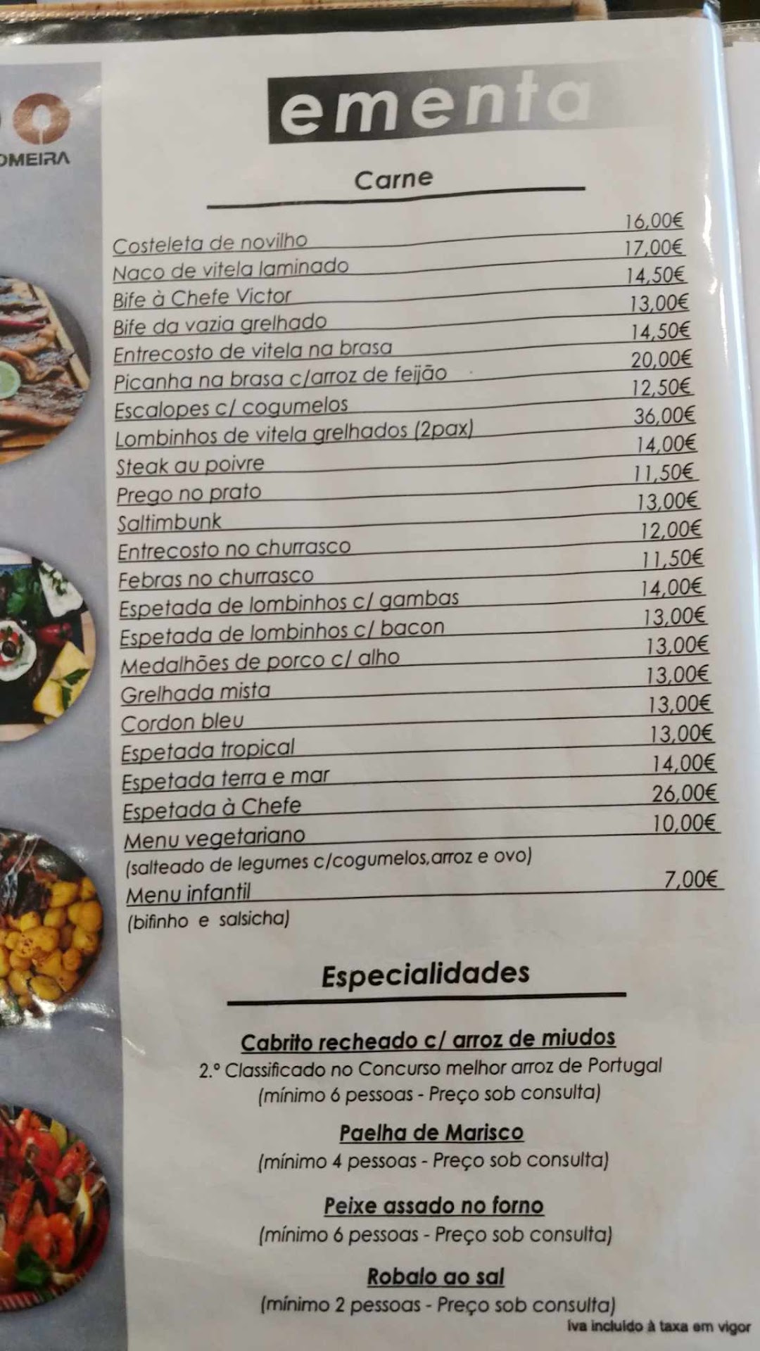 Carne: De notar que não têm pratos de carne branca e que a carne vem sempre mal passada. Se gostam de carne mal passada, peçam ao empregado que a querem bem passada, porque não perguntam ao cliente a sua preferência.