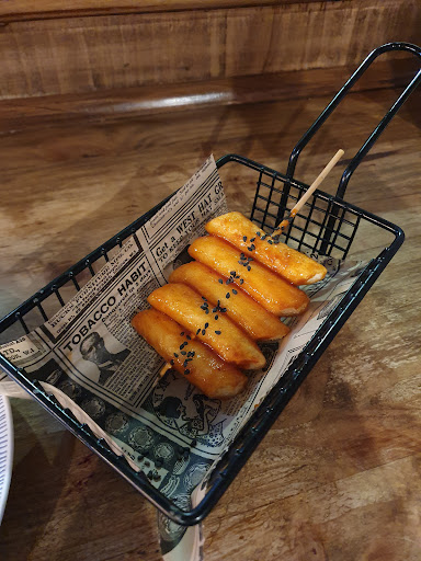 The potato corndog tasted mostly like fresh donut dough, but meat, cheese and sauces were there too (and it was rather fat as well) but it did suit our tastes, a 6.9/10. (5 is normal tasting food so it is still a strong number) we recommend taking one corndog for two people since it is bigggg.