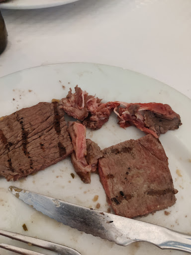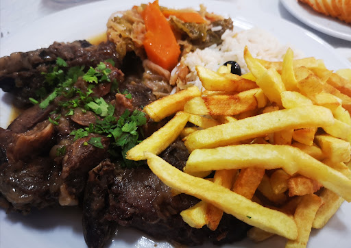 Read moreEstive recentemente neste que era uma referência da gastronomia local. Foi-me indicado por um cliente habitual, apontou as migas como um dos exlibris do restaurante e "melhores do que muitas que se encontram no Alentejo!" Depois desta recomendação, tinha mesmo que provar. Pedimos Medalhões de Porco com as ditas migas, como no cardápio não há qualquer informação relativamente ao acompanhamento, presumimos que as migas eram o único acompanhamento, pelo que pedimos uma dose de batata frita para completar o prato. Eis que chegam os 4 pratos individuais com a comida, 2 medalhões de porco, uma porção de migas e batata frita um gomo de melancia e outro de abacaxi em dois dos pratos e nos outros dois melancia e melão. Nesse momento pedimos automaticamente ao funcionário que cancelasse a vinda da dose extra de batatas, pareceu ficar chateado, mas se tivesse feito um bom serviço, teria dito que aquele prato já traria batata frita. Mas o mais grave, é que um de nós é alérgico a melancia, mais uma vez, a falta de informação no cardápio, tinha evitado chatices. Para não alongar mais a espera e correndo um risco moderado, decidiu-se trocar os medalhões e as batatas que estavam em contacto com a melancia entre os pratos de todos e assim evitar mais uma espera. As migas, foram as piores que comi depois de um fim de semana prolongado no Alentejo, onde comi todas as refeições migas. Eram insípidas e secas. Por seu turno, a carne era maravilhosa, contudo ligeiramente passada do ponto. As batatas eram boas.