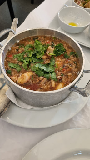 I ordered an octopus and rice stew, recommended by the waiter, which cost €16.50. The dish arrived in a very large portion for one person and was extremely salty. I ate some of it and then asked for the bill.