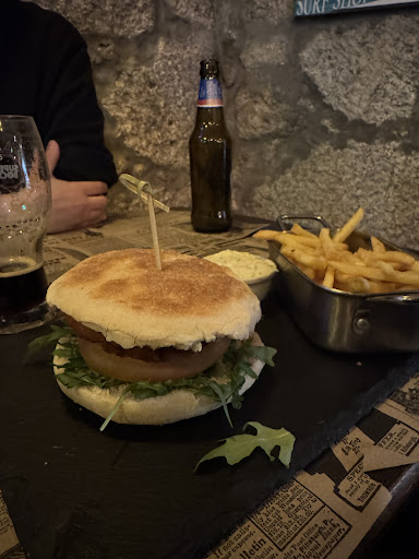Read moreHemos pedido dos Abadías de SuperBock que no tenían, y a cambio nos han dado dos cañas de 1927, de 25cl que no nos han gustado nada, y nos han cobrado 2€ por cada una. Hemos pedido una hamburguesa vegetariana al plato (6€), rica pero que ha venido con patatas congeladas (mal!!!), y una "bifana", que es como un bocata portugués típico (3,80€), que estaba rico. Me he quedado decepcionado con el palo de la cerveza y las...