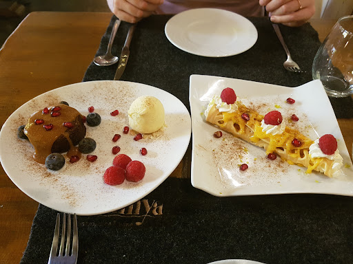 Read moreThis restaurant name is the phonetic spelling of "alquimia" (alchemy), and that is exactly what you would think is going on in this charming hidden gem in the heart of old Covilhã in Serra da Estrela. When we first arrived the restaurant was empty and our host was training a new waiter so was being shadowed rather alarmingly in everything from placing cutlery to taking the order. Set in a cosy old stone building with walls covered in textile art (the specialty of Covilhã), books, musical instruments and other quirky decorations. The menu is presented entirely in Portuguese (which is a good indication of the quality to be expected) and is mainly seasonal and local. Our host could not have been more accommodating or welcoming - he learned and addressed us both by our first names, he made recommendations when asked, and he cracked jokes all the way through the meal as well. The couvert (which we explicitly requested) was herbed butter, olive tapenade, 4 types of bread and organic olive oil. All delicious, especially the cornbread - divine. We asked for duck breast in honey, port and orange with puree sweet potato, and slow-braised pork cheeks with pumpkin and greens. Both were popping with flavour and incredibly moreish. Our host chastised us for not cleaning the entire plate, but we explained this was only so we would have space for dessert. We asked for the salted caramel chocolate cake with cinnamon ice cream (what a revelation that was! Such flavour), and a little glass of port to go with it. I would return in a heartbeat, and I...