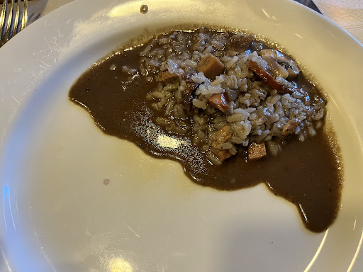 The goat was properly made, crispy and tender, with tasty roasted potatoes. The boar is a fairly small portion of flavorful earthy meat with pleasant mushrooms and chestnuts. The juniper rice is a very soupy and meat-rich rice, with a slightly acidic flavor that works well.