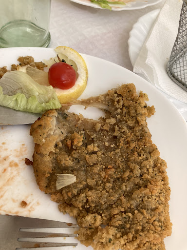 VEGETARIAN FOOD!!! They don't say on the menu, but when you ask the super lovely English speaking staff, they have soy hot dogs and burgers for 3.50, which were so tasty! They also do a meal deal with soup, bread, coffee, potaoes and a huge plate of pork and shellfish, for €6!! They adapted this deal for us veggies too, with cheesy omlette and fries instead of meat, it was no trouble at all and such great value for money. We also had a great minty shake. So nice to have multiple veggie options,they also do pizza and salad. Staff...