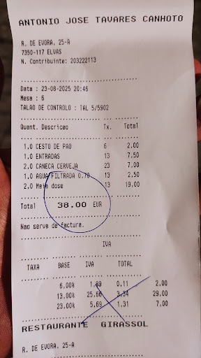 2 pessoas do grupo pediram um bitoque para cada, e as outras duas duas meias dose, que estavam marcadas a 9.50€/cada. Uma das pessoas perguntou se, na sua meia dose, não poderia vir um pouco de "migas". O proprietário disse, amavelmente que "sim" e ao chegar a meia dose, verificou-se que vinha a carne e o acompanhamento era, apenas, as migas. Entendemos que o senhor teria percebido assim e substituído o acompanhamento pelas migas, em vez do que seria normal para nós (o acompanhamento mais as migas)... E nada dissemos até ao pedido da conta, que nos chamou a atenção porque, no final, esta meia dose apareceu com o preço de 18.50€ (o único valor que nos chamou a atenção, no local). O proprietário disse que tinha percebido, que tínhamos pedido uma dose, mas nós dissemos que "não" poderia ser", até porque o "tamanho" não era de dose e nem trazia o acompanhamento devido, sendo apenas acompanhado pelas migas. Ao colocarmos o preço desta meia dose em causa, o proprietário então disse que "não havia problema" e realmente baixou de 18.50€ para 10€, e nem vimos mais nada.