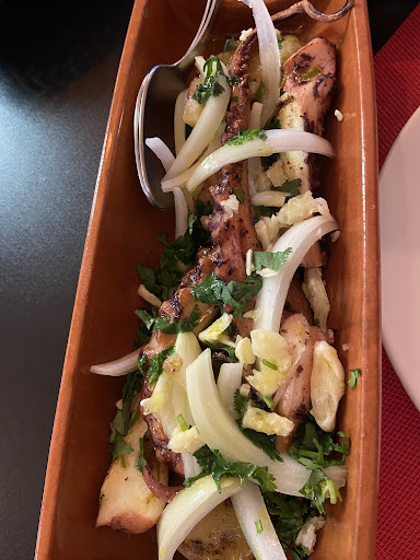 Read moreVery good and rich food for a very good price! The menu costs €12. As a starter there are two very tasty tapas with bread. You choose the main course from the menu (there are about 20-30 alternatives for fish and meat). I had a good portion of squid arms with olive oil, potatoes, garlic, onions and coriander (large portion and super tasty!). There was also a salad as a side dish. A drink is included in the menu. Afterwards there was a delicious dessert and cafe. Team is super friendly! Again and...