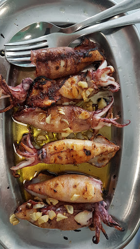 This place is all about local grilled seafood. They will happily escort you to see their stock of seafood available for today and you can select your piece right there. I asked for waiter’s advice and selected squid and duarudo (I might misspell it). Both were done to perfection. Chocolate mousse was too artificial and too sweet for my liking but that was my own choice. Wine is mostly local and couldn’t feel a difference between 4 euro one and 7.50 one (for a small 0.375 L bottle). What it probably means is that 4 euro wine is pretty good for most of us. Vegetables were boiled to perfection. Great food, fast and efficient service. They do accept cc and do speak English. Honestly that was too much for me even considering the fact that I...