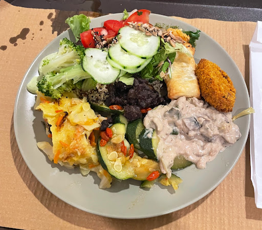Excellent restaurant. Stopped in here after spending time at the Monday market. All the food was vegan/vegetarian, a spinach lasagna with vegan cheese, rice, lentils, noodles with seitan, white and brown rice, salad. You pick anything you want and it was 8 euros including lemonade or tea. She was super helpful, spoke perfect English, Portuguese, Spanish. Would highly recommend this place even if you are not...