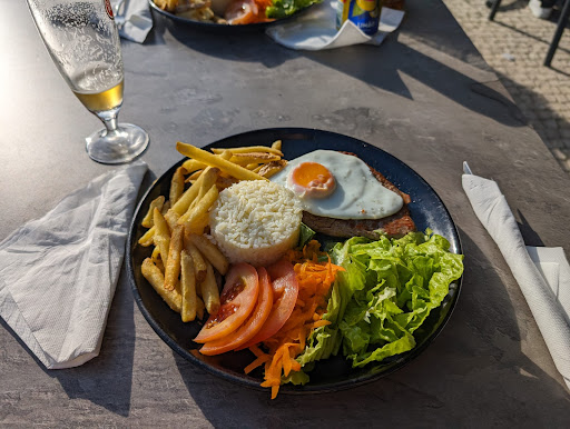 Read moreEspaço agradável e o staff é super simpático e profissional. Chegamos num momento mais calmo e até arranjamos logo mesa na esplanada. Logo depois pelas 20 horas começou a formar-se fila bem organizada pelo empregado que eatava a apontar os nomes sempre indicando o tempo de espera dentro e fora da sala. Pedimos asinhas de entrada. Estavam no ponto pecaram pela falta de identidade, não havia nada que me fizesse querer voltar para comer asinhas, bastante neutras e o molho de barbecue que acompanha é em saqueta. Bom mas não inesquecível. Pedimos depois dois hamburgueres, o Rústico e o Terra-mar, ambos muito bons, excelente mistura de sabores na medida certa. Para o Terra-mar aconselharia talvez um pouco menos de brie. A carne era bastante neutra o que acentuava os restantes sabores. Prefiro sempre que a carne por si só tenha algum sabor mais intenso de especiarias mas no conjunto não afectou a experiência. Para as bebidas, pedidos uma limonada, sabia bastante a limão estava boa. E eu pedi uma Erdinger Pikantus 0.5L. Algo que se nota logo de facto é a inflação nas bebidas, 3 euros por uma Super Bock 0.33L é caríssimo. O que nos leva a escolher as importadas que compensam mais. A que pedi custou 7 euros um preço até normal em restauração. Não sei se é opção para evitar a ocupação da esplanada por turistas a beber finos 0.2L a tarde toda (mesmo isso custa 2.2 euros) mas realmente são preços injustificados. Mesmo o café 1.2 euros é puxadito. No geral um bom local para jantar, foi uma boa refeição. A comida tem uma boa relação qualidade-preço, nas bebidas convém olhar a carta com atenção para evitar surpresas....
