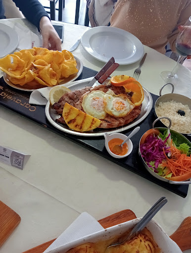 Read moreEstabamos de camino hacia Bilbao y paramos a comer por las valoraciones. Primero nos presentaron una tabla con quesos, embutidos, ensalada variada, palitos, aceitunas etc todo muy completo y que te sirven sin pedirlo ( evidentemente lo cobran). Pedimos medias raciones y suerte que lo hicimos porque las raciones son sumamente exageradas, con la media pueden comer dos o tres personas perfectamente. En mi caso quise probar el bacalao al horno y de sabor era bueno pero el bacalao no era tierno y costaba masticar. Mi acompañante comió costillas de cordero que parecían de dinosaurios eran enormes y una cantidad también exagerada para media ración que pidió, es su caso le gustaron pero solo pudo con dos de ellas, además de arroz, ensalada y patatas fritas. El servicio correcto, un poco lento pero esto en Portugal es bastante común. En definitiva estuvo correcto però os recomiendo medias raciones o compartir con los...