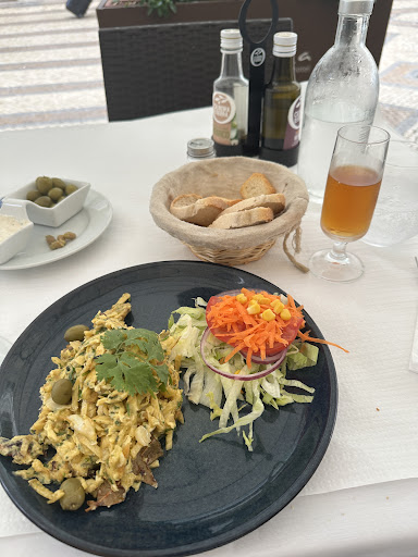 Read moreMe and my wife wanted to sit at a table under the umbrella, it happened to be a table for 4. The waiter made a joke about his boss punishing him if he lets us sit there so he moved us. After we ordered our starter and main course, a few minutes later the starter is brought to us. Then, a couple more minutes later the waiter brings out some bread and ham and looks at us in a funny way while asking “do you like?”. I ironically answered “yes but I didn’t order it”. I assume he was supposed to bring the bread and ham to the table before he took our order. Fast forward, the food was soggy, no napkins or cutlery was changed between meals, glasses were very dirty, drinks were not poured in the glass (for which I’m thankful for).