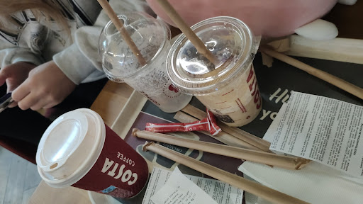 I visit here a lot as I drop friends off at the airport so I stop for a coffee, you don't have to wait ,the service is quick and efficient, and there's always quite a few staff on. The last 2 times I have been the service has not been great, I have a soya cappuccino ,not drank cows milk for 30 years, I saw the assistant go to make the drink with cows milk, so I just said, it's soya sorry, it didn't bother me as its an easy mistake, but her reaction was not great she could have just said oops sorry, but she rolled her eyes and said you didn't ask for soya she was rude and it wasn't a big deal, when she gave me the drink I just said wow because she was so rude, I would have just laughed it off and said no worries but the way she reacted was not good. Today , I visited and a different assistant, served me my drink, in a paper cup ,and I asked do you have a lid please, and she just said NO , not sorry we don't, just NO, so I had a take away coffee with no lid in a busy airport on a Sunday morning ! The staff look really miserable, nobody greets their customers,the customer service on these 2 days...