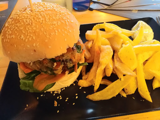 Read moreFound this place by chance as I was walking through the streets of Faro. Although it was really busy the waiting pays off because rhe food was absolutely delicious. I had the vegetarian burger that comes with homemade fries and a homemade sauce (i guess all burgers have fries included). Also my drink, a fresh lemon juice, was amazing. The only drawback of this place is probably the athmosphere and the furniture. The seats are rather uncomfortable and because it is very minimalistic and modern the place is very loud. Maybe some pillows, curtains or whatever would help diminuishing the noise. I would love to enjoy such a wonderful meal in a little bit more relaxed athmosphere. Anyway, the prices are absolutely reasonable and if it is sunny you can choose to...