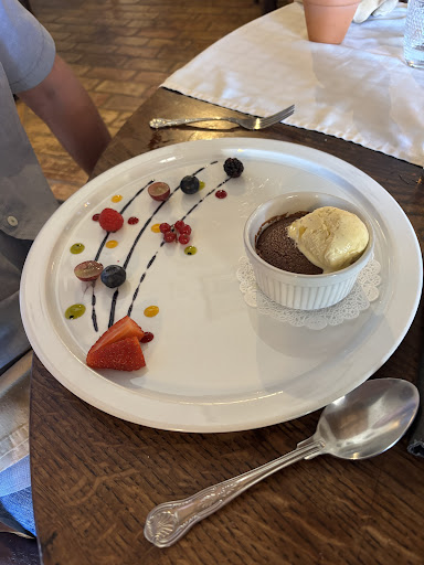 Read moreSaturday night in early June and the place only had 20 covers (25%) . It was a warm evening so sitting out was fine in the lovely outdoor area and once we were seated the owner ignored us completely whilst jabbering away to the next table , one of whom was wearing a baseball cap throughout service. The food was well presented with not much choice for vegetarians and the portion size for the mains was small. Three of us had the pork ribs acompanied with and incredibly small portion of potato bravas. My coffee creme brulle had a base which resembled instant whip not custard . My first two choices from the wine list were unavailable and tap water at 3•5€ a pop is a bit much. The place needs to do better if it wants to recapture the old "French Restaurant" that used to occupy...