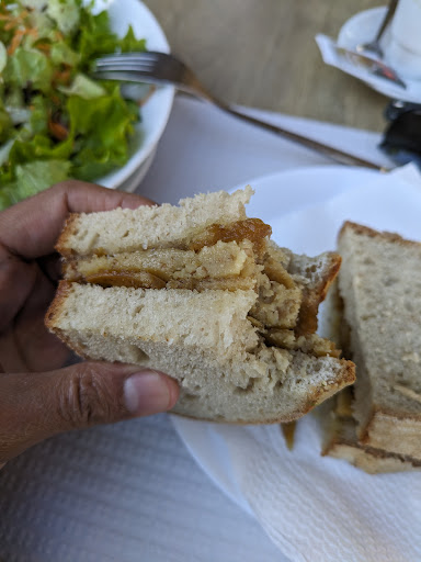 A cebola infelizmente era escassa, tal como o tomate, uma rodela por cada parte da tosta. O pão muito seco, além dos molhos que são a única coisa com sabor, pois nem a manteiga que leva por cima tem algum sabor.