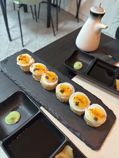 Read moreStaff muito preocupado e prestável. Ambiente com luzes brancas, pouco confortável, o espaço não condiz com o tipo de serviço e de comida que se quer prestar ao cliente, retirando muito valor a toda a experiência. Em relação à comida, fomos pelo the fork com desconto e mesmo assim achamos o valor elevado para a experiência. Pedimos tártaro (15€) e veio um pouco de tártaro dentro de uma folha de arroz, em bites terminou. Tinha cebola caramelizada, o que fazia com que se tornasse difícil de sentir outro sabor além do doce da cebola. Pedimos mais algumas peças, estavam boas, com sabores diferentes, bastante fusão, o que acabava por não deixar sentir o sabor do peixe. O arroz também era diferente, com uma cor...