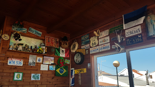 The interior itself is basic wooden stools and tables. You also a view in direction of Faro-Airport, such as the beach. There are also billiard table, darts, table soccer. In case you're smoker, it seems also you might get cigarettes at this place. The decorations on the wall are licenses plates (mostly US). Also there a re other's like an RC plane hanging from the ceiling... Small details that gives it a comfy look.