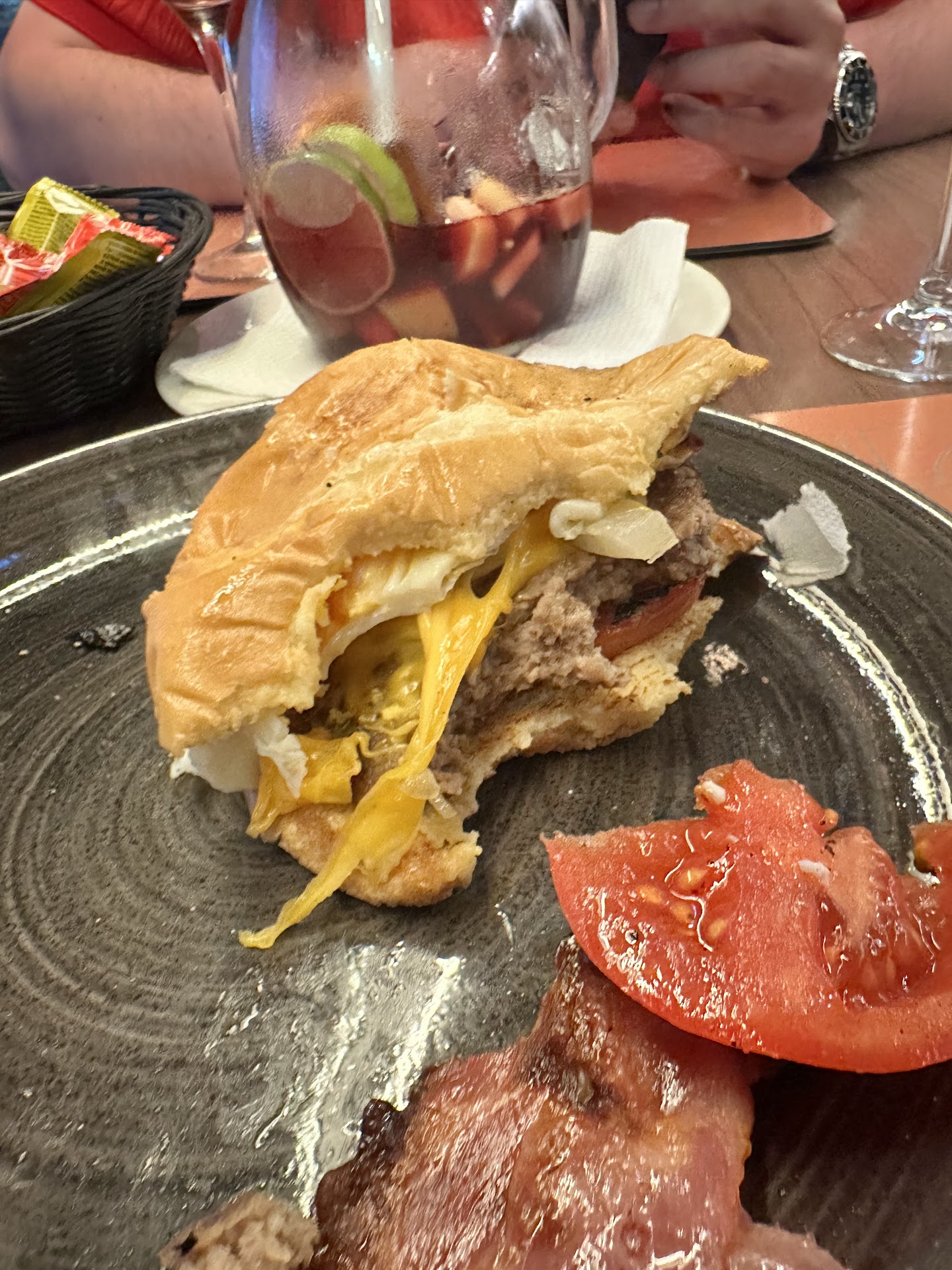 I cannot reply to the coment but as I said earlier.. when asked to change the dish, the waiter was hesitant and didnt want to change the dish. He said I already took a bite of the burger (yet, one must taste the food to understand their liking or not). Management did not do anything. And yes, after a few stares, the burger was remade (as mentioned previously) but again, took the 2 bites (and 1 from my boyfriend to taste) from the pictures below and left it aside and went to McDonalds. Your management team was no help. I understand your staff like the burger, but my review states that I had better and that this burger was hard to swallow. I hope you leave it at that and don’t try to protect your burger by insinuating other things/people were wrong. Pictures are very clear, and at least this was the pictures of the burger after I asked to grill the bread, grill the meat more (as it were barely cooked)...