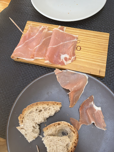 The pork cheeks and creamy potatoes were really good. The salad was covered in oregano, and we didn’t recognize that the dressing was on a barrel next to our table. So the salad was eaten dry with just the oregano. Not good.