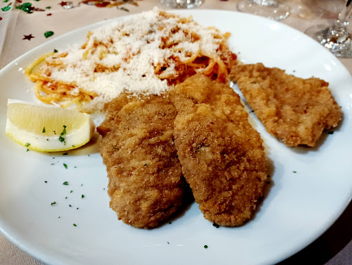 The owners are from Italy and it is a 100% authentic, Italian, family operation - mom and dad were in the kitchen with son Fabio and his lady friend serving The restaurant is large and comfortable with a big wood-burning stove, so it was nice a toasty on a chilly winter night The menu has a nice selection of antipasti (starters), pizze (pizzas) primi (first dishes - pastas), secondi (second dishes - meat/fish), contorni (vegetables/potatoes), and dolci (sweets) at reasonable prices The Caprese Salad (€7.95) was very good, Funghi alla Crema (€7.95), and the accompanying bread crusty and fresh I had the Vitello alla Milanese (€18.50), coming with a side of spaghetti bolognese - the cutlets were delicious and tender, the spaghetti perfectly al dente, and the bolognese molto buono ... HOOAH! My wife ordered an entree size portion of the Tortelloni al Burro e Salvia (butter and sage - €9.95), her favorite, and she was a very happy camper - I concured My son went for the Vitello all Pizzaiola (veal cutlets in a tomato sauce - €18.50) - just like my Nona Tomasina used to make ... GRAND MAMA MIA! The homemade Tiramisu (€4.95) and Fondente al Cioccolato (€4.95) with a scoop of vanilla ice cream were a perfect conclusion to my 65th birthday dinner ... Grazie a tutti voi!