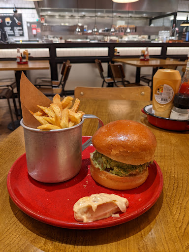 Read moreThis burger place lookes nice from the outside and the interior is quite cozy and cool furnished. We didn't have any problem with the staff, the cashier lady spoke English and acted nicely, and we got our ordered meal quickly. The burger itself was a bit of a disappointment though. The meat was tasty and hot but the rest of the ingredients was kind of cold, even the bread - almost like if they just grabbed it from a fridge. French fries were too oily and weren't even crunchy. Salad with yogurt tasted weird, kind of sour, there must have been a mayonnaise in it as well I suppose. Even though my first bites tasted good, it was most probably due to hunger I had. I can't call it a good experience here and wouldn't go there...