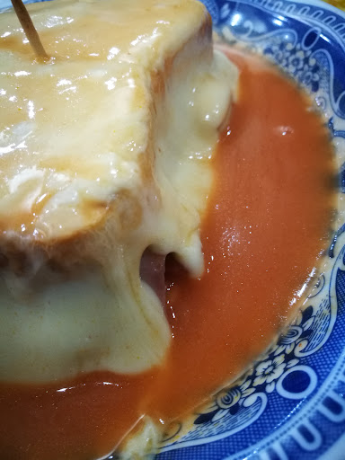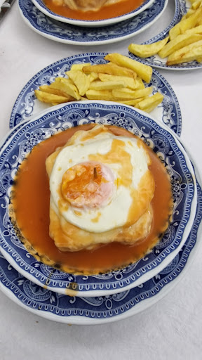 O local é perfeito para marcar como ponto de encontro com amigos e família. A sala de entrada pode te surpreender por ser diferente do que se encontra normalmente em bares de Portugal é igual a uma lanchonete com bancos com encostos estofados e bancos no balcão bem lanchonete americana com teve ligada no canal de esporyes, os clientes podem fumar neste local. Na segunda sala é uma nova surpresa, pois você entra e é completamente difetente da anterior, pois parece os restaurantes pequeninos de antigamente com azulejos azuis e apenas 4 mesas e onde éramos atendidos só por membros da família que faziam um pouco de tudo dentro desses restaurantes, é uma boa lembrança para quem conheceu lugares, e torna o local muito agradável e depois você encontra a 3 sala bem maior em que se pode marcar um jantar com amigos já que espaço ali não parece ser problema para se jantar com mais de 10 pessoas. A francesinha é muito boa, mas achei o molho um.pouco ralo, mas até aí se trata do meu gosto pessoal. O garçom nos atendeu muito bem. Quanto ao pagamento, tivemos que ir ao caixa da primeira sala e a posição onde está o caixa e ruim, pois temos que passar por entre todos os clientes que estão ali no balcao e nas mesas e Isso é meio chato, melhor se o caixa fosse na...