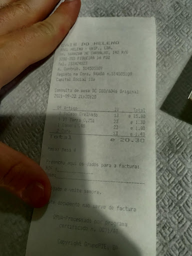Hoje, em pleno meio-dia, o nosso destino foi o Cais do Heleno, nome que já em si encerra um eco de lendas e mar. E ali, nesse porto de almas famintas, a dourada grelhada surgiu, não apenas como peixe, mas como a revelação de um instante. Oh, se a sua perfeição não era quase mística, um sabor que se desfazia na boca e no espírito, deixando a alma a pairar num contentamento sem nome! Mas que seria do manjar sem o ritual que o envolve? A equipa do Cais, em cada gesto, em cada palavra, demonstrou uma simpatia que transcendia o mero ofício. E para mim, que me demoro nas subtilezas do existir, a gentileza dos funcionários não foi um pormenor; foi a essência mesma da experiência. Uma gentileza que, qual brisa suave, quase valia, por si só, metade do prazer da refeição, preenchendo o vazio da alma com a leveza de um sorriso. E assim, no Cais do Heleno, não só se comeu, mas se viveu, por instantes, a harmonia entre o paladar...