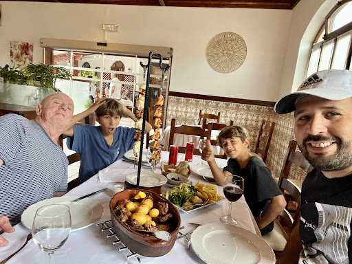 Pretty much the restaurant you want to find when strolling around the Portuguese countryside. In a small village this restaurant has an amazing cuisine. When you go in, you can see a typical medium-sized Portuguese restaurant, with lots of tables and lack of space between them. It's a code environment, but once you start trying the food it gets even better. The tuna pâté is amazing, and the chorizo and cheese are great. I had a shrimp and squid "espetada" that were incredibly tasty and the side dishes were also very good. To finish, I tried the egg pudding and the coffee sweet. I wanted more of them both. It was a shame, I couldn't try the chocolate mousse. Definitely would...