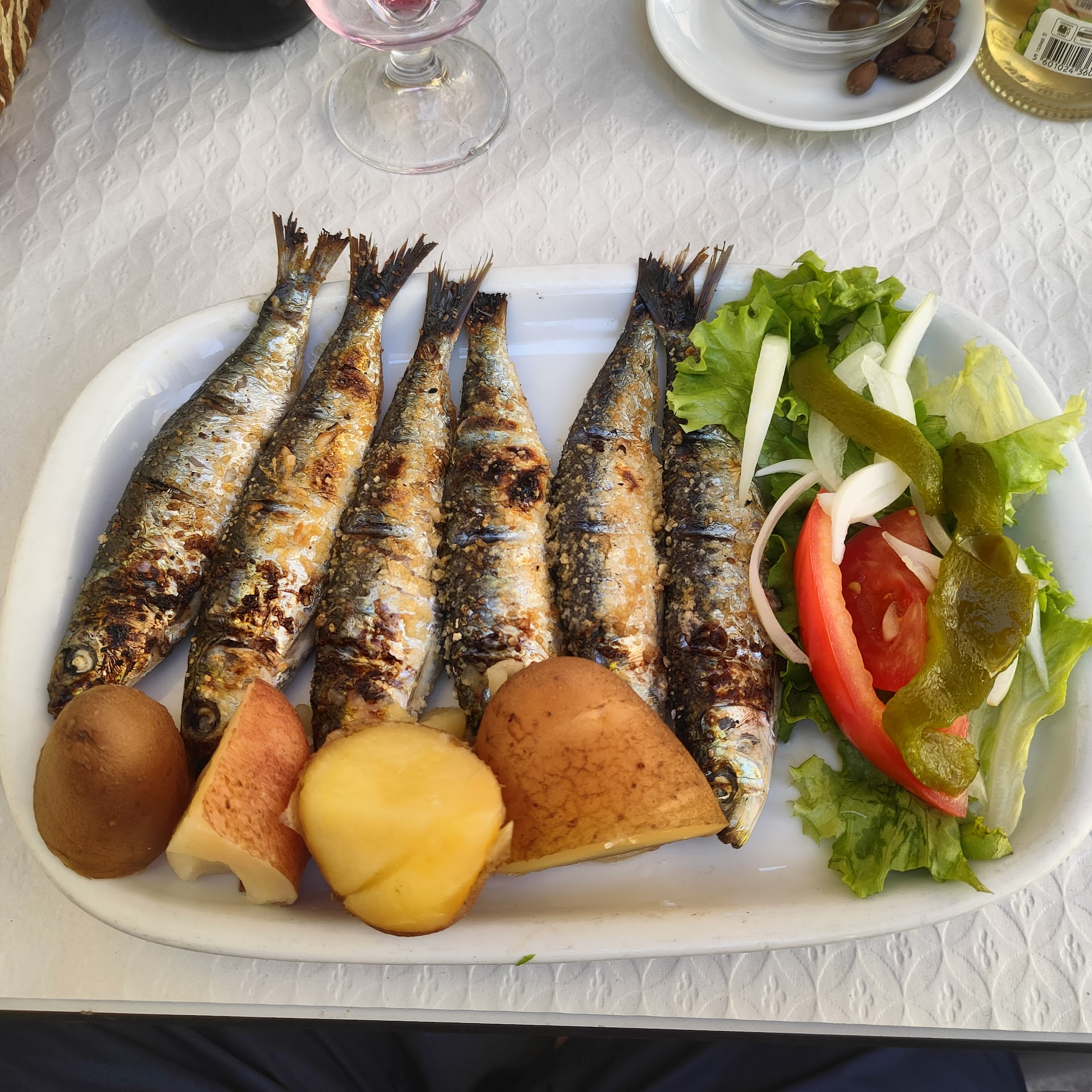Super local, super good food, especially grilled fishes! The fishes were grilled when I ordered, came quickly hot and with crispy skins! Together with a jug of house wine and a tasty soup, some olives + bread, just at €7.5! The bartender (or so I think) can speak English well. Highly...