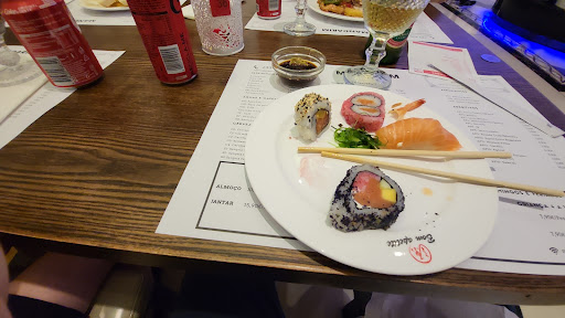 Read moreTalvez demasiado habituado a restaurantes chineses/"japoneses" tinha as expectativas muito baixas, mas a grande publicidade a nível pessoal aumentou o meu interesse e procura. Fui em grupo. Comecei decepcionado pela localização e enquadramento já que se encontra numa zona industrial ou comercial quase abandonada. Ao entrar surpreendeu a grandeza e decoração da sala. A oferta de sushi não decepcionou, apesar de eu ser purista e achar que não deveria haver sushi frito, com frutas ou cores estranhas. A oferta de comida chinesa era variada, mas continuava a ser, maioritariamente, a que encontramos em qualquer restaurante chinês: aquecida no wook a partir de produtos enlatados. As sobremesas ainda não estavam completamente descongeladas e a fruta, tirando a de conservas chinesas, apesar de serem de época, eram desenxabidas. O que valia era a fonte de chocolate que ajudava a disfarçar a falta de gosto. Há a registar (para uma segunda estrela) o serviço rápido (pouco explicito já que muitos empregados, apesar de não serem chineses, não têm o português como sequer segunda língua) e em grande número (fomos atendidos por 4 pessoas diferentes). Para quem não come como alarves, o preço é elevado, sobretudo se for acompanhado de crianças ou pessoas...