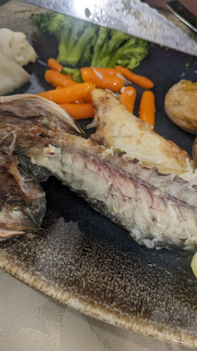 Read moreAinda a tentar recuperar da má experiência. Ambiente pesado. Funcionários educados, mas sem alma( sente-se de longe o ambiente pesado de quem não quer estar ali). Começamos por pedir uma água. A água chega numa garrafa de vidro( da casa). Assim que o funcionário coloca a água no copo, sai uma espécie de espuma. Fiquei sem perceber se o funcionário viu ou não. Deixei a água assentar no copo e criou uma espécie de goma branca. Pedi para levarem mostrando os copos, mas do outro lado apenas silêncio sem nenhuma justificação ou pedido de desculpa. Pedi um prato de peixe: Robalo escalado. Peixe cru, batata " a murro" velha e legumes cozidos ( congelados). A experiência foi tão má que quando o funcionário se aproximou a perguntar se estava tudo bem, não tive coragem sequer de olhar na cara do senhor. Disse apenas" sim,sim". Não pedimos café nem sobremesa. Quando pedimos a conta e levantei o talão da bandeja, havia dedadas de chocolate na mini bandeja. Não queria acreditar....