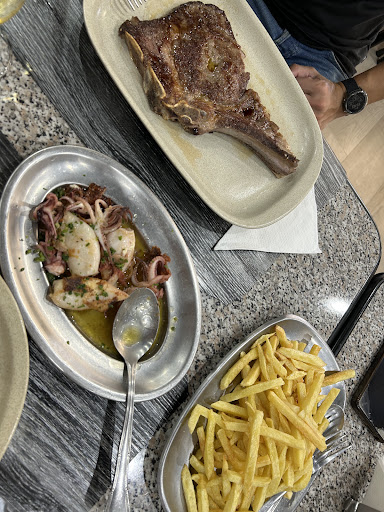 Conclusão, foi nos servido uma costeleta ( media/pequena) para cada, que estava tenra mas sem sal, e como Único acompanhamento, uma travessa pequena de batatas fritas para dividir por duas pessoas adultas. 🤷♂️ Por estas duas costeletas + um copo de tinto + uma cerveja + um café, pagamos 30€ sem direito a fatura ou conta discriminada. Ou seja, preço dado por boca, tal como faziam nas tascas antigamente. Sei que podia ter pedido fatura. Mas também sei que uma má crítica vale mais que uma reclamação. Principalmente com passoas arrogantes. Posto isto, espero que ponham a arrogância um pouco de parte e lembrem de quem nós os dois éramos... Porque vamos voltar. Mas da próxima vez vamos com mais calma e sem pressa para termos tempo para esperar pela conta. Por enquanto...