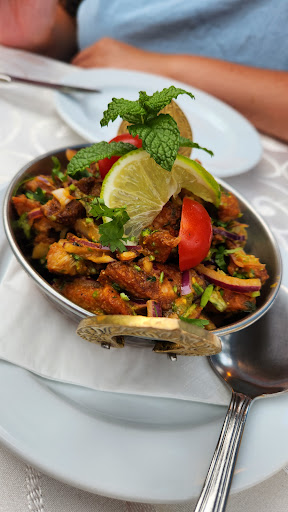 Staff are warm & welcoming. We had lentil soup, delicious prawn pakora that were superb and onion bhaji (sublime - flat little circles of loveliness) Chicken in coconut milk was sweet and rich - too filling for me so they happily packed the leftovers up to take home! The next time I had tandoori chicken which was freshly made and sizzling on a hotplate with onions underneath. My husband had a deer & asparagus curry - a Himalayan speciality that was very tasty. Next time another delicious speciality of lamb curry. Both times we had a peshawar naan each slightly different but charred delicately and again leftovers came home with us.