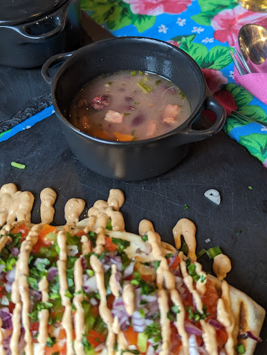 When the food did arrive at our colorful outdoor table, it was so well presented and quite good. We really loved the soup.