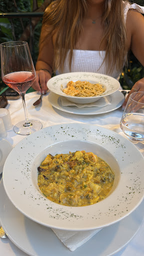 Read moreWe'd reserved a table here but it took 5 minutes for someone to acknowledge that we'd entered the restaurant and show us to the table, although it was busy. Eventually we ordered, a garlic bolo to share and I opted for the Fish of the Day. The bolo was delicious, chewy, slightly charred and not too heavy with garlic. The main course came soon afterwards and was disappointing. Two pieces of sea bass, a thin piece of salmon and a single prawn, served with dry tagliatelle. The pasta seemed almost like an after thought, lacking any sauce with a few finely diced carrots and peas mixed in. There was a tiny amount of herb oil on the plate so this added a little interest but honestly it was so bland and boring, I couldn't finish it. The fish was cooked nicely though. Great atmosphere and setting amongst tropical plants but wear mosquito repellent as there were a few dancing around. The waiters were friendly but given the uninspiring food I...