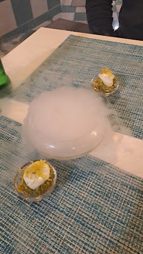 Read moreThe other half and I fancied a curry, so walked the short distance down to Chef Guru. We were instantly welcomed and shown to a table, and from here it just got better! The staff are quite simply lovely and extremely attentive, nothing is too much for them. We ordered poppadoms and a main dish each of lamb rogan josh and fish curry. Following the delicious poppadoms and pickle tray, we were served an unexpected starter treat, please see pictures. Served on dry ice it was lovely. Then the mains arrived and wow! Each dish comes with a portion of basmati rice, so you don't need to order any, however, we added a garlic naan to our order, as we were really hungry. Both of us have said that this was one of THE BEST curries we have had, the heat was just right (you were asked how hot you wanted it, so cooked from scratch and not from a mass produced batch) and the flavours were amazing. A nice thin naan bread, laced with garlic butter and tasty rice too. Absolutely love this place and we will be heading back there before we head home. PS - we live near Bradford, the curry capital of the North and our curries trumped anything we've ever...