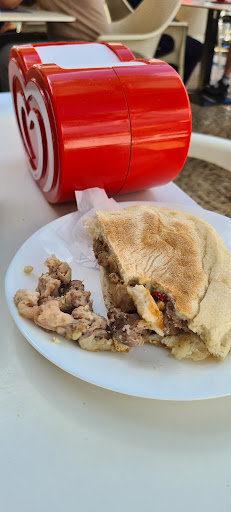 Read moreWe was passing by and there was a nice smell coming from the cafe we called in the staff was miserable we asked for a menu we was told you can have a pork sandwich or a toasties . So we ordered two pork sandwiches and two drinks, we almost got are for thrown at us , we started eating the sandwiches and they were the WORST sandwiches we have ever had there was so much gristle in them so we had to leave them, when we asked for the bill we was left waiting for about 15 minutes when we paid the bill eventually we wasn't asked if everything was alright or any comments about how much of the sandwiches was left. NEVER EVER GOING BACK TO THIS TERRIBLE CAFE . In the picture is all the gristle that came out of my first half...