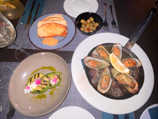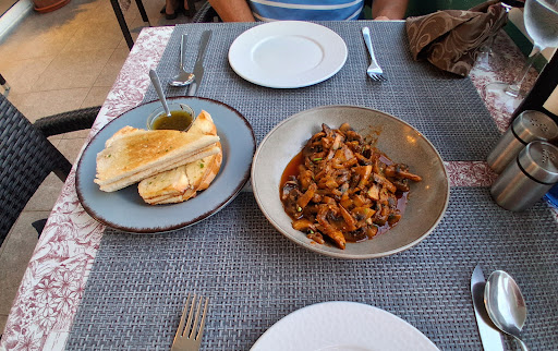We shared a starter of mushrooms sautéed in Madeira wine - delicious and it was a huge portion [too much for one person in my opinion]. Mains : chicken in lemon/garlic sauce and lamb shank. Both really nice and tasty, could not fault anything.