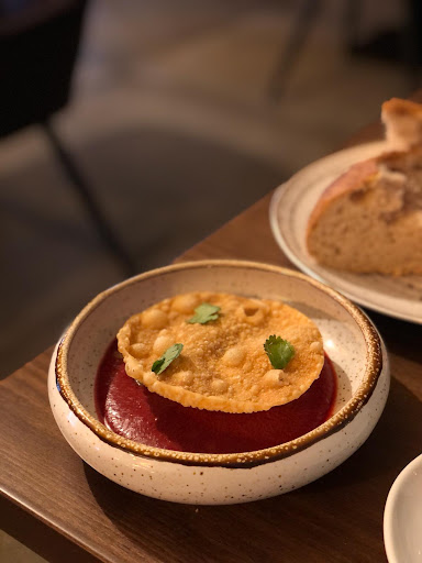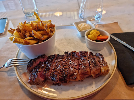 The bread was fine but we felt the chorizo crumb didn't really add anything. The beef tartare was fine but over salted and packed out with capers and onions so it didn't really taste of beef tartare in our opinion. The mushrooms and pumpkin dish was not good, it was under seasoned and the elements didn't really come together. The whole thing mostly tasted of burnt pumpkin seeds which were clearly supposed to be toasted not burnt. The steak main was good and well cooked and seasoned. The fish main had a nice sauce but was overcooked, it came with a nice seaweed risotto but it felt like two separate dishes which again didn't really hang together. We decided to cut our losses and not bother with dessert.