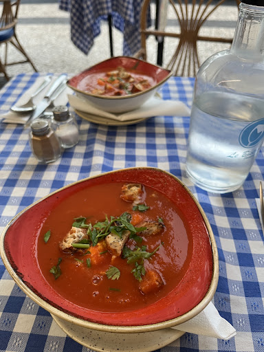 Read moreMe and my husband each had one of the 3 course specials (me espetata and him fish with banana). We had our 4 year old with us and they gave him a plate to share our food. Both dishes were very nice (especially the starter soup!) and they gave our 4 year old a portion of the dessert which you could see them make it with fresh strawberries. In hindsight after going to other restaurants during our holiday my husband says that was quite a small fish portion compared to the others he had but it might have been a fluke and didn't let down our review. Lovely staff. The drink that came with the meal was also very...