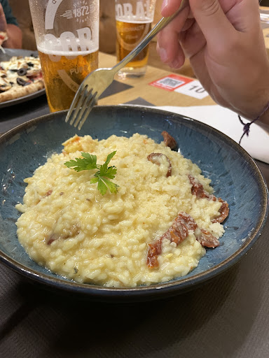 Was kind of quiet here when we visited..the other sister restaurant in Rua Dos Tanoeiros 'La Galeria'p did not do anything gluten free so we were sent up here. The food here is fantastic and some dishes can be adapted to be gluten free,, the mushroom starter was great, the gluten free seafood pasta with cream tomato and prawn was amazing, Tiramisu (not for coeliacs) was fantastic. The waiter Diogo brought us over free lemoncello shots as we were suggesting doing a lemoncello Titamisu but we poured the shots over it, according to Diogo they were going to do a lemoncello Tiramisu, we got on really well with him.. He's such a really nice guy..very professional, friendly, chatty funy and a real pleasure to be served by. Hope he felt the same for us. the location isn't ideal as it's off the main road 10 mins walk from the old town but well worth going out of your way uphill a little for a visit..Come here for brilliant...