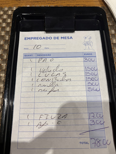 To top it off, when the bill arrived (a handwritten scrap of paper, not an actual receipt), we noticed an extra dish had been added. When confronted, the waiter immediately admitted it and knocked €5 off the bill, clearly aware of what he had done. It felt like a quick way to brush it under the rug and avoid further discussion.