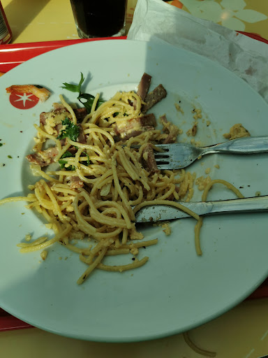We were passing and needed to eat. We wanted to avoid bread based, so avoided all burger, sandwich and pizza places. Which didn't leave a lot. Came across this pasta place. Had the choice of about 10 different pastas with every type of meal, so you could choose your favourite with any meal. I had the gamberetti a prawn based dish with farfalle and partner had the carbonara with fussilli. Both very nice, served with a diet coke as a meal deal. 8.50 and 6.50 respectively. This was a very nice concept for different fast food and avoiding the bread and pastry...
