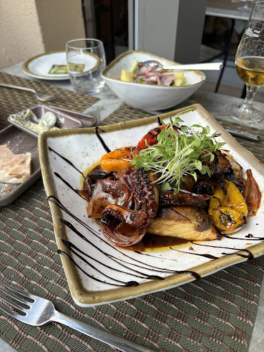 This started so well and quickly went south. We started off with a decent octopus salad and got a good wine recommendation. Everything was promising. We felt confident enough to order the clams. We placed our main orders for skewers, the fish of the day (sea bream), and the waiter explained extensively what sides we could expect with those. We were excited!
