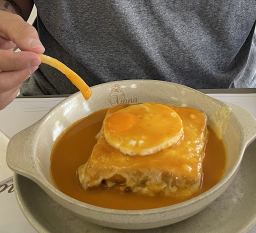 Read moreA café/bakery/confectionery shope with a large selection of desserts. I was told the owner is from northern Portugal so they make products typical also from that part of the country. I was recommended by one Madeiran person to have their Francesinha toast with fries which is originally from Porto and is very popular there. I have seen many Portuguese eating this toast in Madeira too. The toasted bread was filled with a piece of roast meat, bacon, something more, then cheese, then the bread was topped with fried egg and the whole thing was covered in some kind of tomato sauce. For me it was just too overcombined, I wouldn´t have this again. But I do understand they make it like this and they enjoy this toast the way it is. It is said that it was inspired by the French croque monsieur but of course croque monsieur is a totally different level, so delicious. So I didnt enjoy the Francesinha toast but it is not the fault of this café, it just didnt meet my...