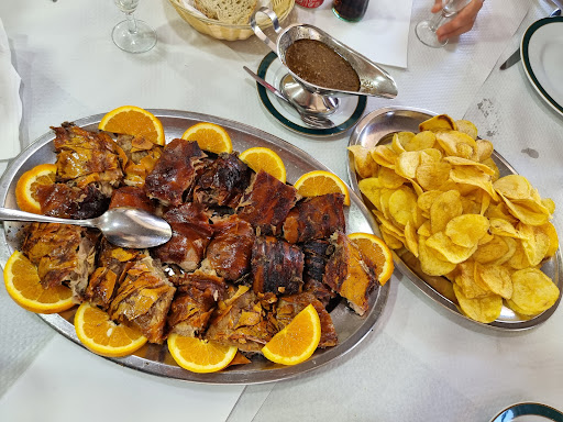Read moreVoici un lieu où nous avons coutume de nous rendre pour fêter l'anniversaire de notre fils lorsque nous sommes au Portugal. Encore un 5 étoiles me direz-vous... En fait je n'ai pas trop le goût du risque lorsque la responsabilité m'incombe pour choisir un restaurant😅 Je m'appuie donc sur des valeurs sûres. Ici la spécialité est le cochon de lait, et il est extrêmement tendre et savoureux! Servi avec des chips de pommes de terre, des crudités et une sauce poivre/ail, c'est un émerveillement pour les papilles. Comme souvent au Portugal, on peut être décontenancé face au concept de "dose"... Ils sont plutôt gros mangeurs, et je ne sais pas si certains pourraient engloutir une dose en étant seul, mais dans notre cas, 2 doses 1/2 ont suffi à nourrir 7 personnes. Mieux vaut demander conseil aux serveurs pour cela. Le notre, Eduardo, est d'origine brésilienne et s'est avéré adorable avec un sourire de tous les instants, un grand merci à lui. Concernant les tarifs, ils sont très raisonnables bien que globalement supérieurs aux autres restaurants de la région. Je terminerai par les "vinhos da casa": le blanc frais et légèrement pétillant s'est avéré parfait pour nous rafraîchir à l'apéritif en cette période de forte chaleur... Le rouge, servi frais où à température se montre un excellent compagnon pour la spécialité de la...