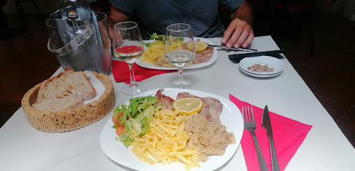 We were a big group (6 persons) and we went there totally off-hours. Fortunately they were very kind and we could have very nice secretos accompanied by artisanal fries and rice. This Portuguese term refers to a specific cut of pork, known for its hidden location between the belly and ribs, and also for its high quality and flavor. It is considered a special cut and enjoyed by many in the Alentejo...