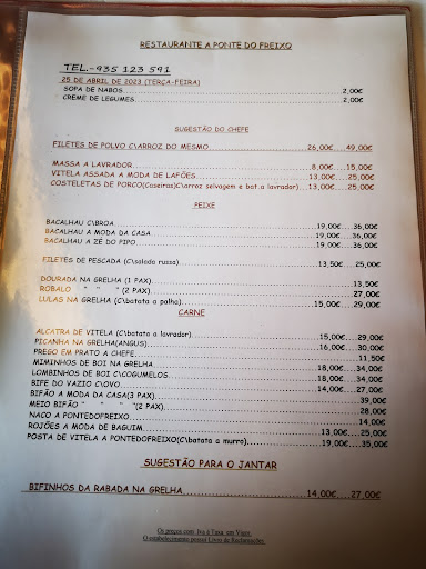 Barrado à entrada por o certificado da minha esposa não ter 14 dias. Tudo bem, estão a cumprir a lei. Eu desconhecia é que se apresentasse um teste negativo poderia jantar na mesma, mas só obtive essa informação depois de me ir embora. No entanto ninguém no restaurante Ponte do Freixo me deu essa informação, e a preocupação deles foi apenas barrar-me a entrada, nada fizeram para contornar uma situação fácil de resolver. Má recepção, pouca simpatia não devem precisar de clientes com certeza. Conclusão, desloquei-me a outro restaurante que me informaram que embora o certificado não tivesse 14 dias poderia fazer um teste. A minha esposa fez o teste e jantei sem problemas num restaurante em que fui recebido com toda a simpatia e cordialidade. Caros amigos, embora eu até conheça quem já jantou aí ao fim de semana com um certificado de 2 ou 3 dias, tenho vos a dizer que se vocês não precisam do meu dinheiro, eu também passo a não precisar dos vossos serviços. Não faltam é...