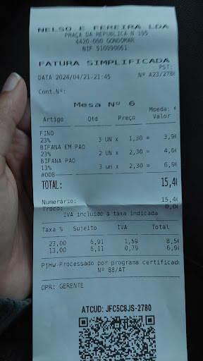 Read moreCafé, que serve refeições. Neste dia de festa serviu boas bifanas, a tradicional sopa de nabos, vinho doce, e mais petiscos. Não tem condições, sobretudo na pequena sala do fundo, em que quase não se pode respirar, sem janelas, apenas um pequeno ar condicionado que pouco resultava....