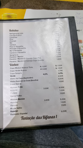 Read moreOns eerste bezoek aan Tentacao das Bifanas was een hele ervaring. Het restaurent was ons aanbevolen door eerde bezoekers van de AirBNB en ook door de host Pascal. Op zaterdagavond en zonder reservering waren wij dankbaar nog het laatste vrije tafeltje achterin te mogen krijgen. Na plaatsgenomen te hebben verwacht je dan toch minstens een kwartier te moeten wachten op enige actie, maar tot onze stomme verbazing werd er meteen een ober die goed Engels sprak (Pedro) opgetrommeld en binnen twee minuten stond er bier op tafel. Wat een ervaring, in Nederland nog nooit meegemaakt. Op advies van de ober de Bifinas besteld, die ook al snel op tafel stond. En inderdaad heerlijk gegeten en voor een zeer aantrekkelijke prijs. En het dessert, de hemelse creme, was...